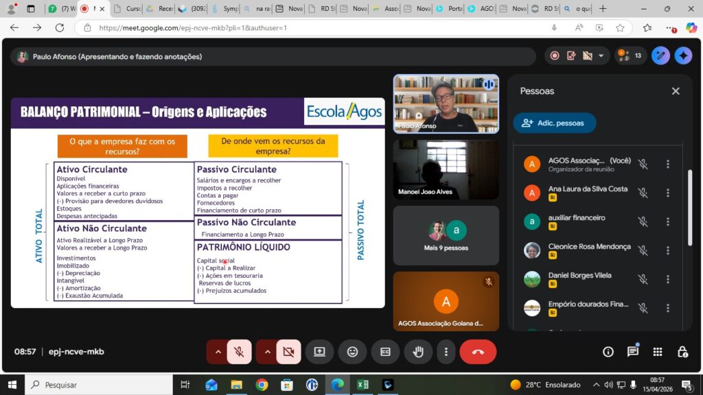 A Associação Goiana de Supermercados (AGOS), por meio da Escola AGOS ON, realizou no dia 15 de abril o curso Administração de Fluxo de Caixa e Capital de Giro, voltado ao fortalecimento da gestão financeira dos supermercadistas. A capacitação reuniu mais de 10 participantes, entre profissionais de Goiânia e do interior do Estado, incluindo cidades como Trindade, Rio Verde, Morrinhos, Montes Claros de Goiás e Itumbiara.